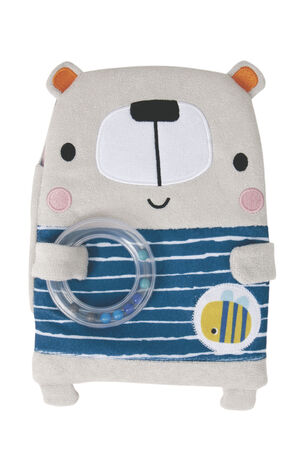 Un libro con divertidas ilustraciones y solapas que se despliegan para recrear las casas de los tres cerditos en las que el niño podrá representar las escenas con los personajes del cuento. Se presenta en una práctica una caja que contiene el libro y los personajes para que los niños los puedan llevar siempre consigo.