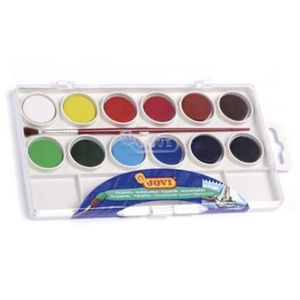 La acuarela de alta calidad "Jovi" está diseñada para dibujar en casa, en la escuela, en estudios de arte, adecuados para diferentes técnicas de dibujo. 12 colores básicos. Pinturas en una caja con cubetas de agua y un pincel. Comprimidos comprimidos con un diámetro de 22 mm (peso 2,9 g) con un alto contenido de pigmento. Mucho más económico que las acuarelas semisecas en cubetas. Se divorcian fácilmente: cuando se agrega una pequeña cantidad de agua, los colores son muy saturados y brillantes, y un aumento en la cantidad de agua conduce a los efectos típicos de la técnica de la acuarela. Bien encajado en la superficie, se puede utilizar para dibujar en varias superficies: papel de diferente densidad, cartón, para colorear figuras secas de pasta de modelar, congelar en el aire o de papel maché. Las pinturas se lavan de la mayoría de los tipos de telas.