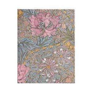 William Morris, uno de los grandes exponentes del movimiento Arts and Crafts, creía que cualquier decoración es inútil si no evoca algo más. Le gustaba utilizar tintes naturales en su producción textil, como se aprecia en esta versión en tonos rosas y pasteles de su diseño de algodón estampado Honeysuckle (madreselva).