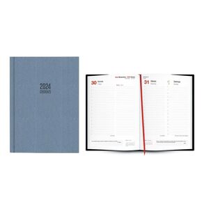 Agenda atenas d/p 17x24 azul grisaceo 2024.Papel blanco ecologico 80gr opaco satinado. Impresión 2 tintas. Tapar dura polipiel termovirante. Encuadernada con cinta punto lectura. 6 paginas por semana