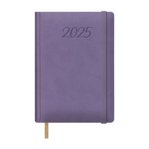Agenda anual. Cubierta realizada en polipiel con cartón contracolado y almohadillada. Estampación del año en seco. Interior con sábado y domingo en la misma página, impresa a dos colores en papel ahuesado de 80 grs., con 336 páginas. Datos personales, Calendario trienal, Planning del año, Indicativos internacionales, Páginas para anotaciones y Listín. Cabeceras en 5 idiomas (Castellano, Catalán, Gallego, Euskera y Portugués), Onomástica, Días transcurridos y restantes, Semana, Calendarios del mes actual y siguiente.