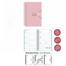 Vista previa: AGENDA ANUAL 2025 SEMANA VISTA MINI ESPIRAL TAPA POLIPROPILENO CON GOMA 90X135 ROSA PASTEL SENFORT