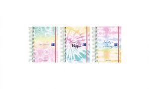 Agenda Oxford TIE DYE 8º (12x18 cm) Día Página en castellano. Tapas extraduras con acabado mate y con motivos de absoluta tendencia. Anualidad de septiembre a agosto, para todo el curso escolar. La agenda TIE DYE te da todas las funcionalidades de Oxford con un diseño inspirado en la moda hippie de los 60 con tonos pastel. Únete a la revolución pacífica Tie Dye de Oxford, una explosión de colores que reivindica la libertad, la inclusión y la felicidad simple. Interior Nude Azul, ideal para organizar todas tus tareas y destaca lo más importante en la zona Quicknotes®. Además, cuenta con muchas hojas para notas, listas y recordatorios. Con uñero microperforado. Compatible con la aplicación SCRIBZEE®.