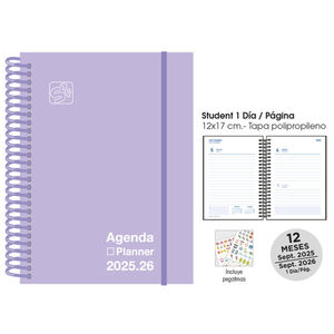 Vista previa: AGENDA ESCOLAR 2025-2026 A5 DIA PAGINA JUNIOR STUDENT LILA SENFORT