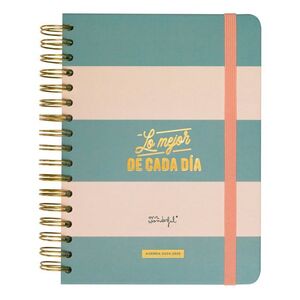 Agenda estilo Wonder de Mr. Wonderful, con organización diaria, va de septiembre de 2024 a finales de agosto de 2025. Esta agenda contiene: 368 páginas de papel de 90 gr con la certificación FSC Bolsillo interior de cartón Regla de plástico interior Frases diarias motivacionales 8 hojas de pegatinas Juegos y extras entretenidísimos Horarios y calendarios (del último trimestre de 2024 y de 2025 y 2026 completos)