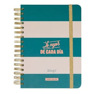 Agenda estilo Wonder de Mr. Wonderful, con organización diaria, va de septiembre de 2024 a finales de agosto de 2025. Esta agenda contiene: 368 páginas de papel de 90 gr con la certificación FSC Bolsillo interior de cartón Regla de plástico interior Frases diarias motivacionales 8 hojas de pegatinas Juegos y extras entretenidísimos Horarios y calendarios (del último trimestre de 2024 y de 2025 y 2026 completos)