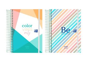 Agenda Oxford Color Block 8º (12x18cm) DÃa Página en castellano. Tapas extraduras de cartón peliculado mate y barniz selectivo y cierre con goma. Anualidad de septiembre a agosto, para todo el curso escolar. La agenda Color Block tiene dos modelos multicolor disponibles. Interior Nude Azul, ideal para organizar todas tus tareas y destaca lo más importante en la zona Quicknotes«. Además, cuenta con muchas hojas para notas, listas y recordatorios. Pizarra Write&Erase en la contratapa y uñero microperforado. Compatible con la aplicación SCRIBZEE«.