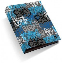 Archivador con cubiertas de cartón forrado de papel impreso con plastificado mate y diseño graffiti