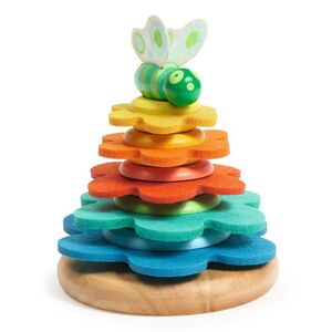 Descubre el juego de apilar Baby Color Butterflower de Djeco, un juego creativo fabricado en madera y fieltro. Los/as niños/as pueden apilar los discos de mayor a menor y agregar la mariposa para completar su hermosa pirámide. ¡Debajo del anillo más grande te espera una agradable sorpresa!