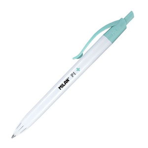 Bolígrafo P1 antibacteriano, tinta azul. El cuerpo del bolígrafo contiene un tratamiento que inhibe y previene el crecimiento bacteriano, gracias a los iones de plata. Ideal para mejorar la higiene en la escuela, oficina, ambientes en contacto conalimentos y entornos sanitarios. Cuerpode color blanco con pinza y botón de color turquesa. Longitud de escritura aproximada de 1.200 metros. Punta 1 mm. Tinta fabricada en Alemania.Diseño original creado por el departamento de I+D de MILAN. Medidasbolígrafo: 14,1 x 1,7 cm. 1 cm Ø.
