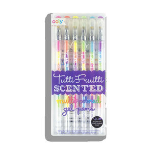 Cada vez que escribe y dibuja con las plumas de gel perfumadas de Tutti Fruitti, le espera una colorida tinta en forma de gel. Esto se debe a que las plumas de Tutti Fruitti están hechas con una hermosa tinta de gel de sorbete multicolor que cambia de color a medida que dibuja. Y también huelen muy bien. Cada set viene con seis plumas con deliciosos aromas frutales que incluyen naranja, limón, uva, fresa, manzana y cereza. Las plumas de gel Tutti Fruitti también se ven bien en papel negro. Pruébalos en nuestros Sketchbooks de Black DIY Cover y observa cómo cobra vida la tinta del gel en un papel negro. Úsalos para dibujar, dibujar, escribir, escribir tarjetas de felicitación o notas de clase. Tu escritura y dibujo nunca serán lo mismo.