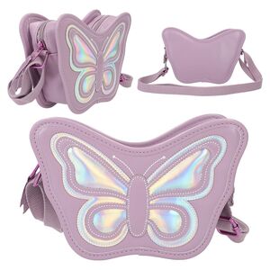 Este monísimo bolso bandolera de TOPModel es color malva y tiene la forma de una mariposa. En la cara delantera lleva preciosas aplicaciones tornasoladas. La longitud de la bandolera se puede regular en dos tamaños mediante botones de presión. El bolso tiene cierre de cremallera. Material: PU 100 por 100; bandolera y forro: poliéster 100 por 100.