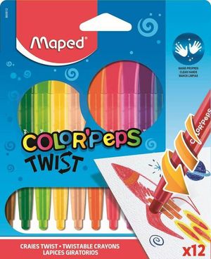 Caja 12 ceras Maped Color' Peps Twistable son elegantes y funcionales para adultos y niños por igual en el hogar o la escuela. Simplemente gira el barril para dibujar.