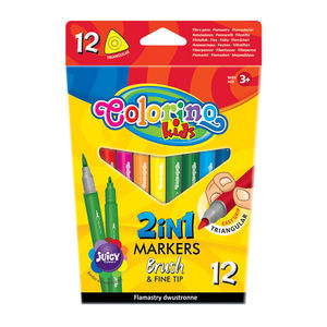 Vista previa: CAJA 12 ROTULADORES TRIANGULARES DOBLE PUNTA PINCEL Y FINA COLORINO