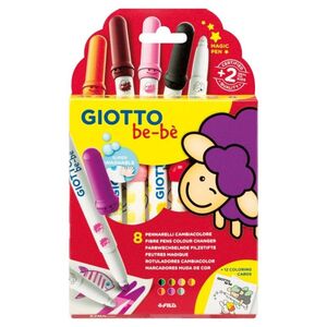 Estuche con 8 rotuladores Giotto Bebé, uno de ellos con tinta especial, "mágica", que cambia el color de lo que pintamos con los otros.