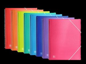 URBAN: el compañero ideal para tu organización diaria. Fabricada con plástico translúcido rígido, la gama de productos de archivo URBAN está diseñada para la protección de tus documentos ya sea para para guardarlos en la escuela, la universidad o en tu casa. Su diseño está inspirado en contornos del laberinto URBAN La carpeta de fundas de espiral A4 OXFORD URBAN es muy práctica de usar, ya que las tapas se pueden abrir 360 ° gracias a su espiral transparente de plástico. Permite llevar el contenido perfectamente protegido gracias a su cierre con gomas. Incluye 60 fundas en acabado cristal, lisas y transparentes para una visibilidad inmediata del contenido. Las tapas de polipropileno translúcido aseguran una inmediata visibilidad de los documentos. Disponible en diferentes colores vivos a juego con los colores de la gama de cuadernos Oxford CLASSIC.