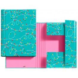 Carpeta con cierre de gomas y cubiertas de cartón plastificado forrado de papel impreso plastificado brillante