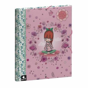 Carpeta portadocumentos LOL está decorada con una impresión estilo Liberty en tonos azul pastel, salvia y turquesa en contraste con los paneles centrales de tonalidades rosa intenso y nuestra dulce chica Lol siempre con su camiseta y sus calcetines de rayas, de protagonista. Interiores rayado verde.