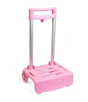 Carro para mochilas escolares y medianas. Fabricado con materiales ligeros y de gran resistencia. Las ruedas son de silicona con almohadillas, resistentes y silenciosas. Medidas del carro: con el tirador plegado la altura es de 51 cm, con las barras extendidas 82 cm, y la base tiene 28 cm x 17 cm.