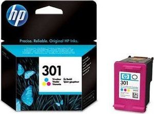 Cartucho de tinta tricolor HP 301. Rango de humedad relativa de funcionamiento: 20 - 80%, Rango de temperatura de almacenamiento (TT): -40 - 60 ° C, Rango de temperatura de funcionamiento (TT): 15 - 32 ° C. Peso del paquete: 60 g, Peso: 41 g, Dimensiones del paquete (WxDxH): 113 x 37 x 115 mm