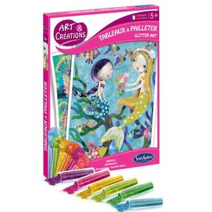 Con esta actividad podrás pintar con purpurina brillante 2 hermosas láminas de sirenas. Retirar una a una las diferentes áreas pre cortadas adhesivas y escampar purpurina por encima.