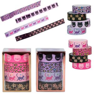 ¡Rrrr! Pegar, decorar o empaquetar con la elegancia de un felino es posible gracias a este set de cintas adhesivas decoradas. Cada set se compone de cuatro rollos de cinta de seis metros con diferentes motivos felinos. ¡Ya verás cuánto puedes divertirte!
