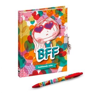 Diario Hablando Sola + Bolígrafo Diario con candado metálico y cubiertas duras con estampación de corazones multicolores Contirne 102 páginas en blanco de papel extra opaco de 100 gr/m² y un bolígrafo a juego Papel ecológico fabricado a partir de bosques sostenibles Producto Hablando Sola by Busquets Dimensiones:14.00 x 19.00 x 1.50