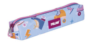 Estuche portatodo pequeño y práctico, sólo para llevar aquello necesario. Serie especial Roller 2, una colección con un diseño inspirado en los patines retro de 4 ruedas. Un estampado creado con una paleta de tonalidades azules, mostaza y rosa. Composición tejido: poliéster. Medidas: 20,5 x 4,5 x 5 cm.