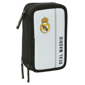 Tamaño: 12,5x5,5x19,5cm. Contiene 36 piezas : goma, lápiz de grafito, bolígrafo azul, sacapuntas, regla azul grabada, y semicírculo (primer compartimento), 16 colorines de madera (segundo compartimento). 14 rotuladores de colores (tercer compartimento).