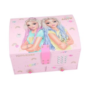 Para guardar los secretos más importantes. Este joyero fucsia con motivos de modelos de TOPModel muy cool y monísimos iconos solo se deja abrir con el código que tú hayas creado. Al introducirlo correctamente suena la famosa canción "Don't call me up". ¡La bandeja interior extraíble y los 2 cajones hacen que este joyero sea muy práctico, además de superbonito!
