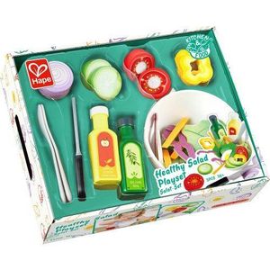 ¡Prepara una comida sana con este fantástico juego de ensalada! Incluye trozos de huevo, aguacate, pepino, tomate, cebolla y otras verduras que pueden trocearse usando el cuchillo de juego realista. ¡También incluye un bol para ensalada, una cuchara, un tenedor y dos botellas de aderezo!
