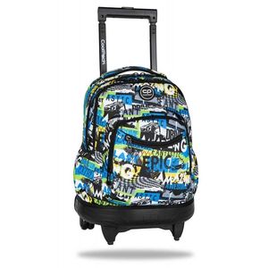 La mochila escolar con ruedas BUZZER Centre de Coolpack tiene gran capacidad y es una mochila apropiada para niños de primaria (de 6 a 10/11 años de edad). Tiene el carro integrado y tirantes opcionales y acolchados que se pueden recoger para que no rocen en el suelo ni con las ruedas cuando se usa el carro (como se muestra en la tercera imagen). Dispone de dos amplios compartimentos, uno de ellos con bolsillo para portátil. En su interior dispone de un organizador para los bolígrafos y demás accesorios de papelería. También dispone de un accesorio para llevar las llaves. El fondo de la mochila está protegido a prueba de golpes. También lleva dos bolsillos laterales para llevar bidones de agua. Mango telescópico de 52cm. Las medidas de la mochila son: 46x32x20 cm.