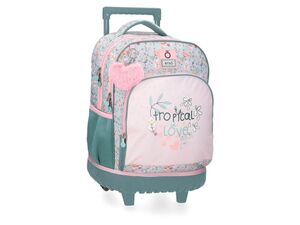 Dos compartimentos ideales para organizar libros, libretas, carpetas y carpesanos de tamaño DIN A4. Bolsillo frontal para los pequeños accesorios y el material escolar y dos bolsillos laterales para guardar la botella y el paraguas.
