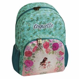 Mochila escolar Coquette está decorada con una tela de fondo turquesa con un estampado floral, el dibujo de Coquette en el centro y flores que la rodean. Forros y correas turquesa. El nombre de Coquette bordado. Tiradores de cremalleras de metal en forma de bicicleta. La. La mochila escolar Coquette tiene un bolsillo principal para llevar libros, libretas y carpetas, y un bolsillo frontal de tamaño medio. Dispone de correas de transporte regulables y acolchadas. Espaldera acolchada y asa superior de transporte. Base acolchada para soportar el peso del contenido. Esta mochila está preparada para carro porta-mochilas, con túnel dorsal más elementos de sujeción. Exterior: 100% poliéster con revestimiento impermeabilizante. Forro: 100% poliéster 30,0 x 45,0 x 15,0 cm.