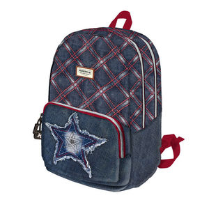 Dos compartimentos y 1 bolsillo delantero. Material poliéster.Parche estrella.