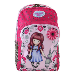 La Mochila Triple Bolsillo de Gorjuss con el diseño My Gift To You tiene dos compartimentos con cierre de cremallera y un bolsillo frontal, también con cremallera, con tres compartimentos para bolis y un bolsillo para el móvil, la agenda u otros materiales.