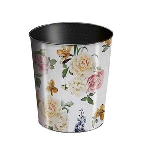 Papelera metal ROSES está decorada con una impresion con elementos orgánicos y flores de colores pastel sobre blanco, que crean una Atmosfear creativa que inspira el paraíso.