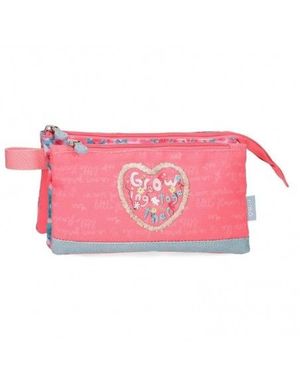 Estuche portatodo de dos cremalleras. Cremallera principal para dos compartimentos. Bolsillo frontal con cremallera secundaria Mini asa lateral. Medidas: 12x22x5cm.
