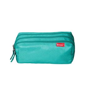 Estuche con triple compartimento y cierre de tres cremalleras. Incluye un forro interior y tiradores textiles para un manejo cómodo. Disponible en una gama de cuatro colores: Negro, Verde Azulado, Azul y Rosa.