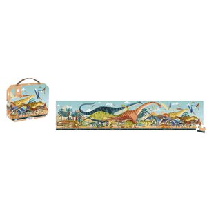 ¿En qué época vivió el Triceratops? ¿En el Triásico, Jurásico o Cretácico? Encuentra la respuesta con este magnífico puzle panorámico que representa un gran número de dinosaurios, clasificados según la época en la que vivieron. El puzle contiene más de 40 criaturas y ayuda a despertar la curiosidad por la época de los dinosaurios. ¡Este puzle de cartón está compuesto por 100 piezas y mide 1 metro de largo una vez terminado! ¡Algo que impresionará a pequeños y mayores! Su bonito maletín permite guardar y transportar el puzle a cualquier lugar. También se incluye un póster en el interior para que sirva de modelo para montar el puzle. La impresión es a base de tintas vegetales, el cartón procede de bosques gestionados de forma sostenible (con certificación FSCTM) y está fabricado en Francia. Para niños a partir de 6 años.