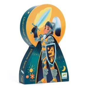 Descubre el rompecabezas de caballero de luna llena Djeco, un magnífico rompecabezas de cartón de 36 piezas para niños a partir de 4 años. Una muy hermosa ilustración de un caballero acompañado de un lobo frente a un castillo fortificado a la luz de la luna.