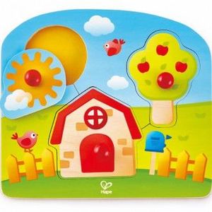 ¡Qué bonita casa de campo! Este colorido puzzle encajable de casa de campo invita al pequeñín a disfrutar de sus servicios campestres a venir a disfrutar de la naturaleza y los animalitos del bosque.