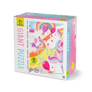 Puzzle gigante Unicornio Mágico de 48 piezas grandes y gruesas, adecuadas para los más pequeños y las más pequeñas, presentado en una caja colorida y preciosa que puede convertirse en un práctico recipiente para guardar todo tipo de juegos. Puzzle de gran calidad de increibles ilustraciones de unicornios.