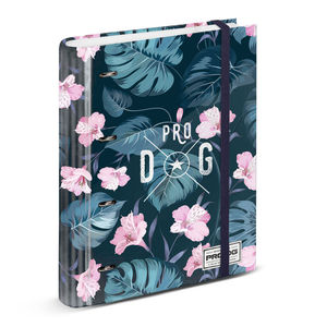 Carpesano de tamaño DIN A4. Tapa dura impresa con acabado mate. Cuatro anillas interiores para archivar documentos. Separadores de distintos colores para clasificar, y hojas interiores con cuadrícula de 5mm y casilla para título y fecha. Cierre con goma frontal de color acorde al diseño.