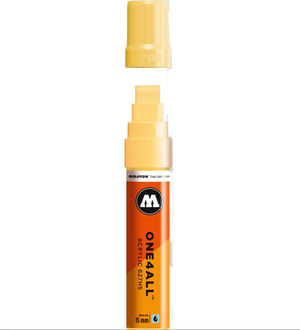 El Rotulador Acrílico Molotow One4all 627HS con punta de 15 mm, te permitirá realizar trazos anchos y rellenar superficies de manera más rápida.