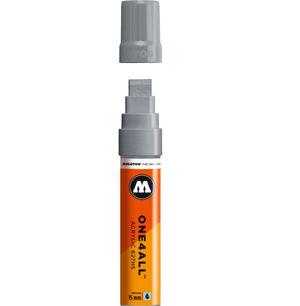 El Rotulador Acrílico Molotow One4all 627HS con punta de 15 mm, te permitirá realizar trazos anchos y rellenar superficies de manera más rápida.