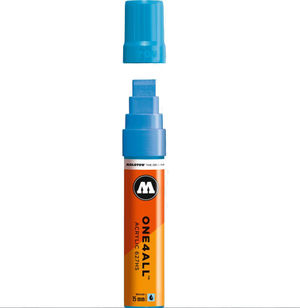 El Rotulador Acrílico Molotow One4all 627HS con punta de 15 mm, te permitirá realizar trazos anchos y rellenar superficies de manera más rápida.