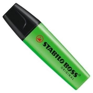 Marcador fluorescente Stabilo Boss original. Rotulador destacador con punta biselada y trazo de 2 o 5mm Fuerte fluorescencia. Tonos vivos intensos y homogeneos. Puede permanecer destapado sin secarse. Apto para papel de fax y fotocopias Tamaño: 10,5 x 2,6 mm Disponible en 8 colores.