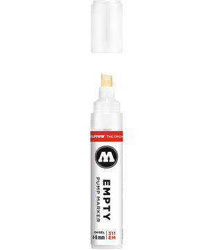Rotulador vacío y recargable, Molotow Empty Marker 311 EM . Con punta biselada de 4-8 mm que se puede recargar con cualquier tinta o pintura líquida del mercado.