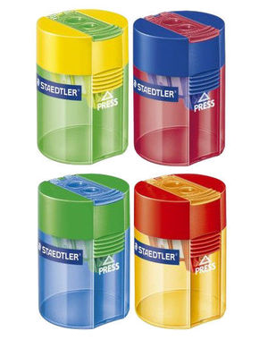 Sacapuntas doble para afilar estándar de hasta 8,2 mm de diámetro y crayones y lápices gruesos de hasta 0,2 mm de diámetro, ángulo de afilado 30 °, cartucho de sacapuntas de metal, un recipiente fuerte protege los esquejes de derrames, una tapa con un cierre especial protege contra lesiones.